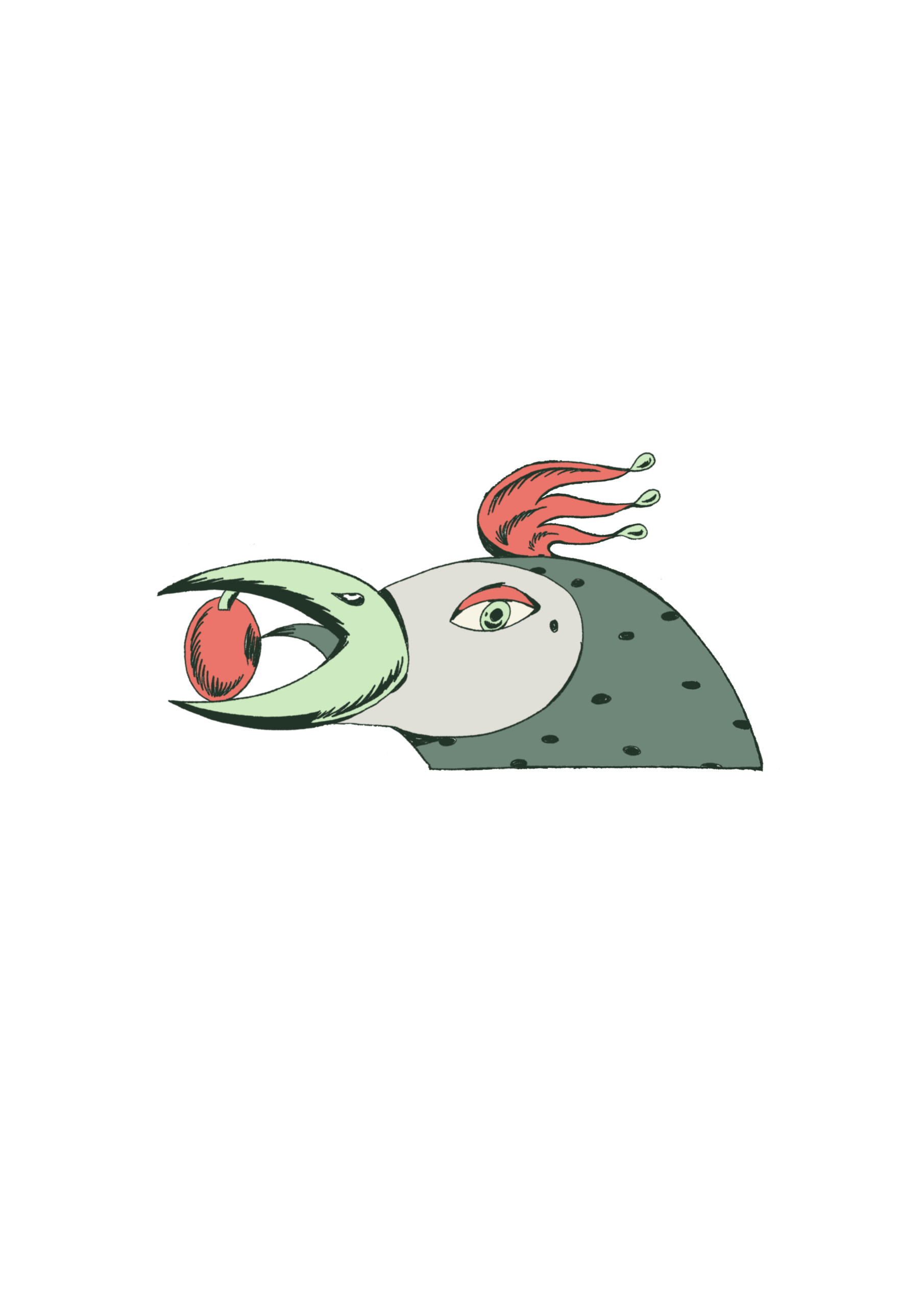La ilustración está inspirada en el recuerdo de una anécdota que nos platicó un productor sobre las aves que comen de los frutos del café. Incluso, en algún momento, tuvimos un café que se llamaba algo así como “picado por pajaritos”, y eso se en cuenta como el inicio del proceso de oxidación y caramelización del fruto.